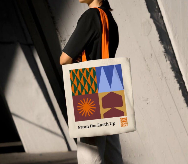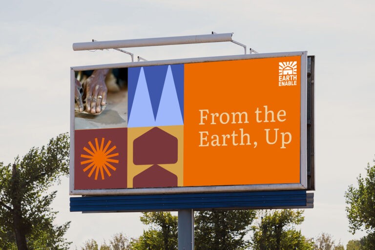 The growth of EarthEnable has been a steady, strategic one: from solving health issues from dirt floors, applying these to wall finishes to combat rodent and parasite infestations, to adobe block building techniques, to ultimately building whole homes and communities. They have worked across stakeholders – from government, to the finance sector, to local masons and rural residents. Our challenge was to create a brand identity that spoke to this holistic, comprehensive approach, that demonstrated the effectiveness of their proven model, and reflected the vibrant culture that had been created. This was a big shift from where we met the brand, with the goal to resonate and engage more clearly with the key stakeholders – allowing them to understand the complexities of the work, the potential of the model as the solution, and illustrate the transformative impact of the work. We wanted EarthEnable to relaunch with a powerful, credible, and comprehensive identity and message – an evolution that was big enough to bring other changemakers and dreamers along with them in solving the huge housing crisis they face.